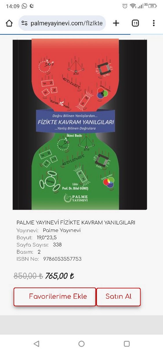 Palme yayınevi Fizikte Kavram Yanılgıları kitabı. Sadece bazi sayfaların altı çizili ve ufak notlar var -resimlerde belirttiğim gibi- onun dışında temiz.