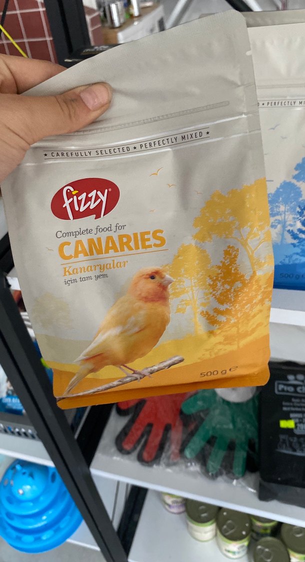 Fizzy markasının kanaryalar için tam ve dengeli besleyici 500g'lik yemi. stol vardır