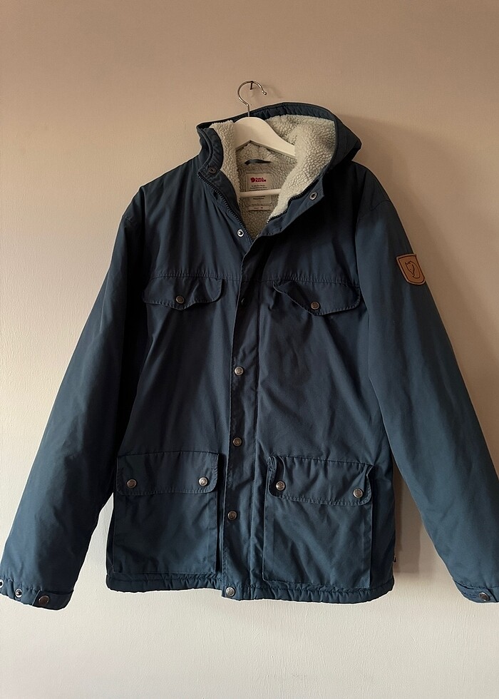 Fjallraven Greenland winter jacket. İçi yünlü sıcak tutar. Fjallraven g1000 kumaşıdır. Rüzgar geçirmez. Rengi fotoğrafda biraz koyu çıkmış daha açık normalde. İki koltuk altı arası 55 boy 75 cm