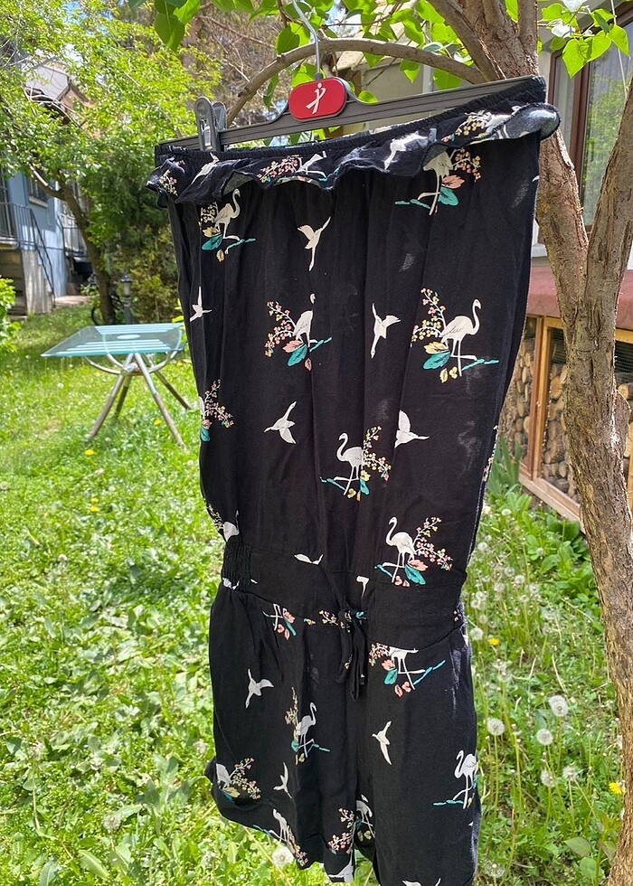 Flamingo ve çiçek desenli şort tulum