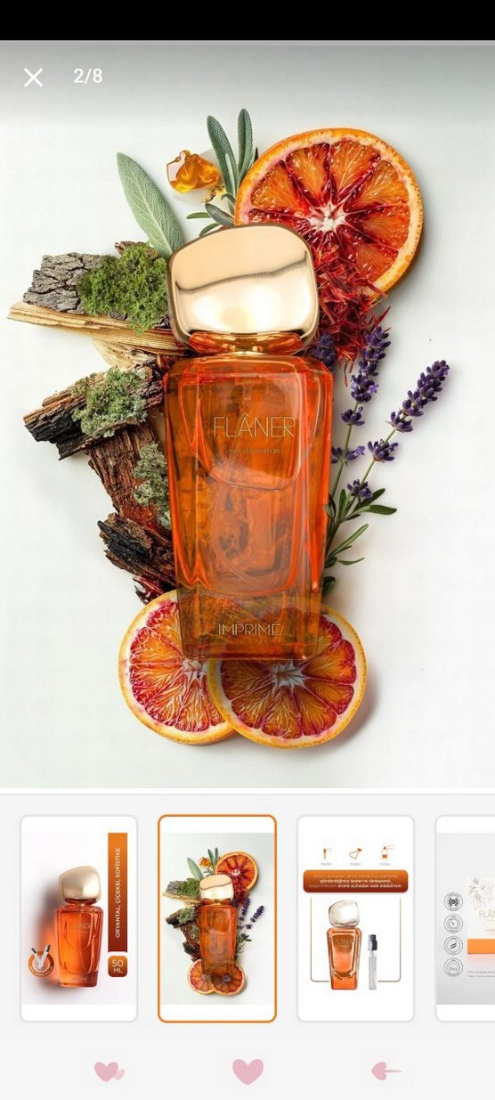 Flaner Imprime kadın parfümü, narenciye ve çiçeksi notaların zengin karışımıyla, şık turuncu şişede altın kapaklıdır. şuan trendyol da 540 ₺ hiç kullanmadım sadece 1 kez sıktım kokusu bana ağır geldiği için satışta