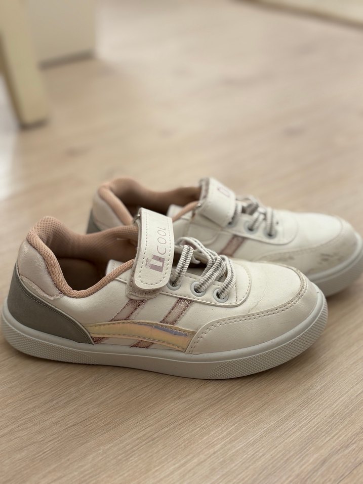 Geçen sene kullandık. Artık küçük geldiği için satıyorum. Fazla kullandığımız için biraz deforme oldu. Ona göre fiyatını uygun koyacağım. Bağıcık kısımları biraz gevşedi. Arka bilek kısmı simliydi. Simleri gitti. Bir de ayak uç kısımları ve hafif yanlarında lekeler var. Cifle gider mi bilmiyorum denemedim. Yıkayıp sildiğim halde çıkaramadım. Beyaz renkli. 29 numara. Tam kalıp. Cırt cırtlıdır. #flo #ıcooldesing #kızçocuk #sneaker #sporayakkabı #beyaz #29numara #cırtcırtlı #