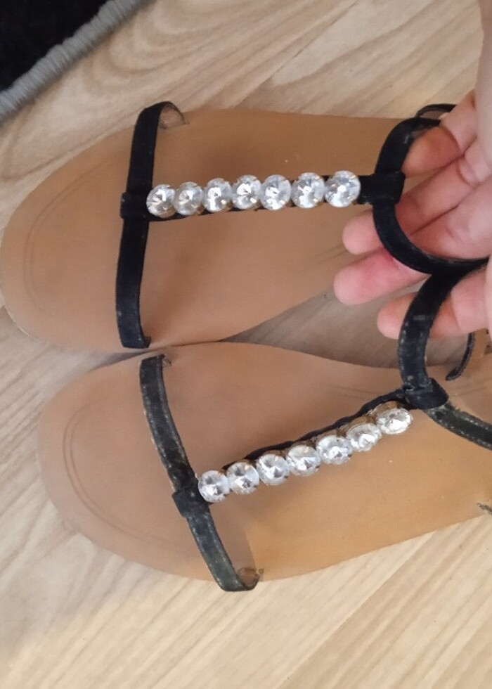 FLO markalı siyah taşlı parmak arası terlik sorunsuz temiz 39.5/40 arası
