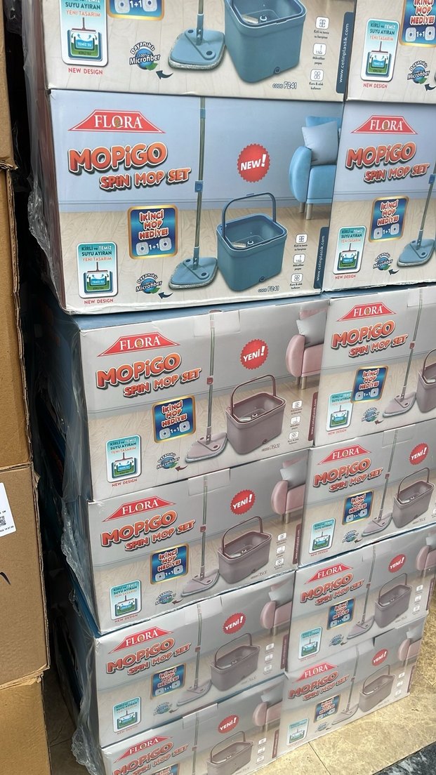 Flora Mopigo döner başlıklı mop ve kova seti, kolay temizlik için gri renkte tasarlanmıştır. Verimli zemin temizliği sağlar.