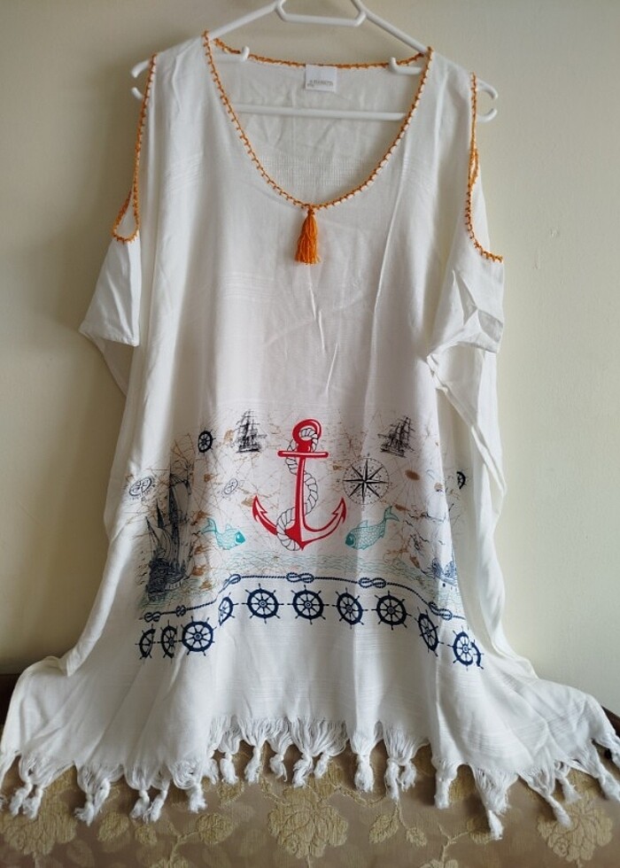 Viskon pamuk karışımı kumaştan yepyeni tertemiz şık bir plaj kıyafeti. Boy 84 Koltuk altından en 57. M ve L bedene uyar