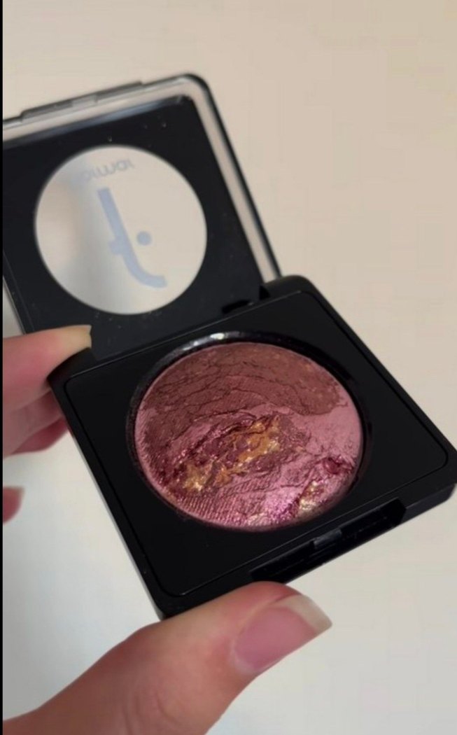 Koyu pembe tonlarında, fırınlanmış dokulu allık, yanaklarda parlak bir görünüm sağlar.