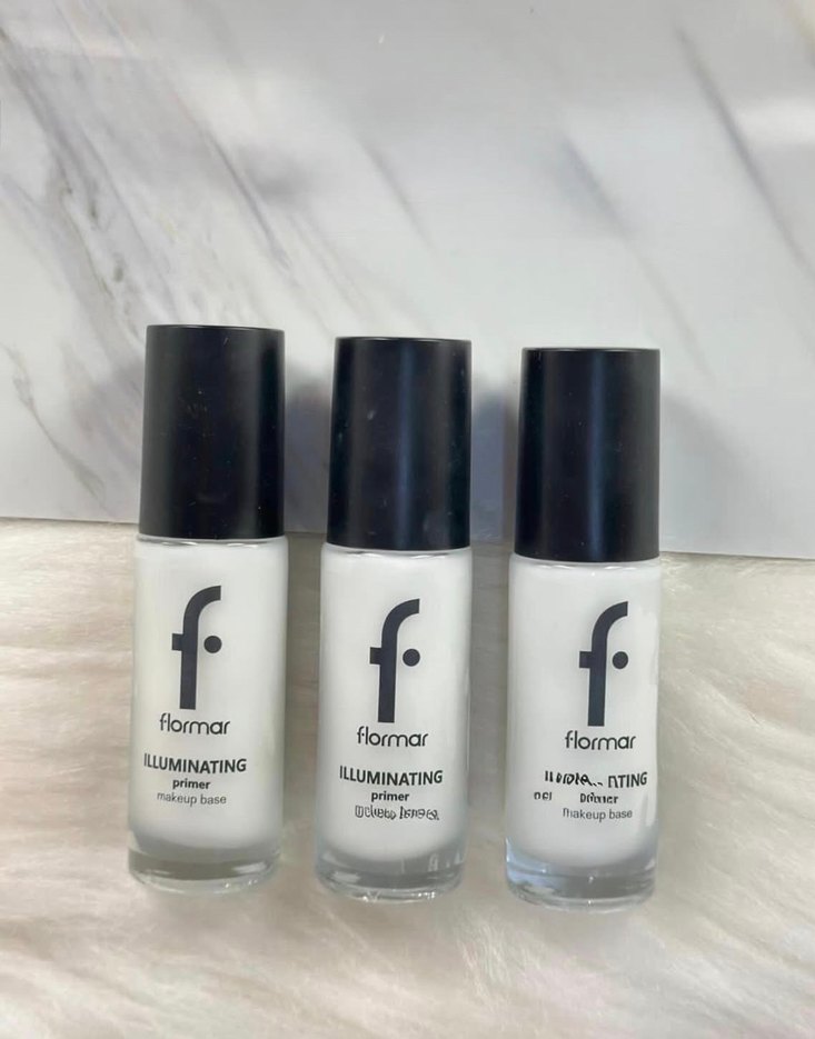Flormar Illuminating beyaz makyaj bazı, cildi aydınlatır ve makyajın kalıcılığını artırır. Siyah kapaklı şık şişede sunulur. ✨