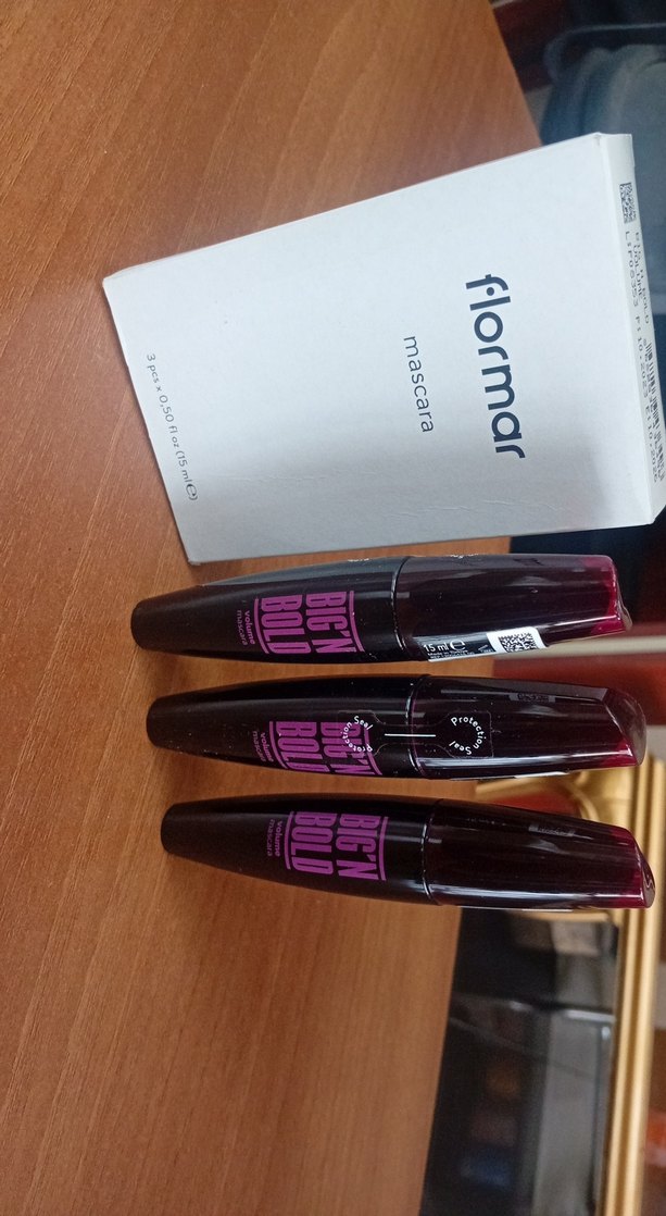 Flormar markasına ait koyu bordo renkli, hacim veren üçlü maskara seti.