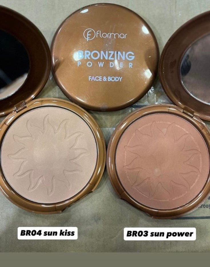 Flormar bronzlaştırıcı pudra, yüz ve vücut için parlak bej tonlarında. BR04 Sun Kiss ve BR03 Sun Power renk seçenekleriyle.