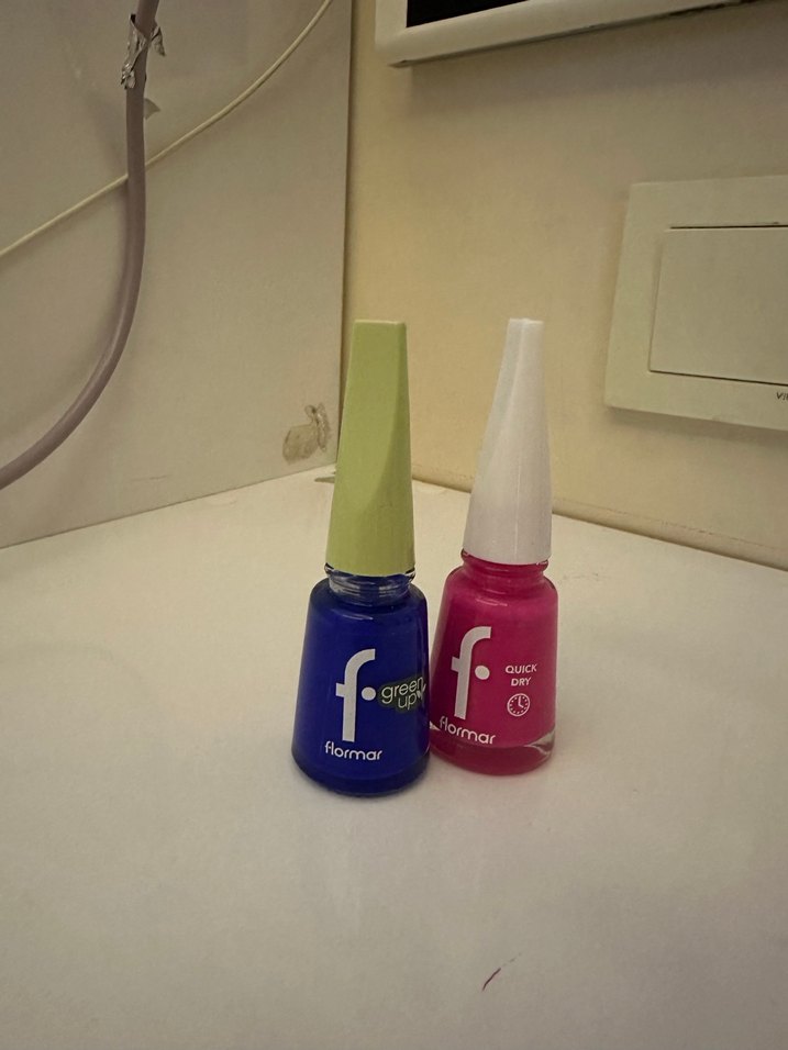 Flormar markalı, canlı mavi ve pembe renklerde oje seti. Hızlı kuruyan formülüyle pratik kullanım sağlar. Hiç kullanmadım,. Daha çok kırmızı rengine sardığım için bu aralar o yüzden elimden çıkartıyorum. İkisinin fiyatıdır tekli olarak da satabilirim