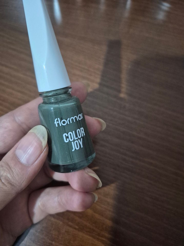 Flormar Color Joy serisi, haki renkli ve pürüzsüz bitişli oje. Beyaz kapaklı şişesi kolay sürüm sağlar.