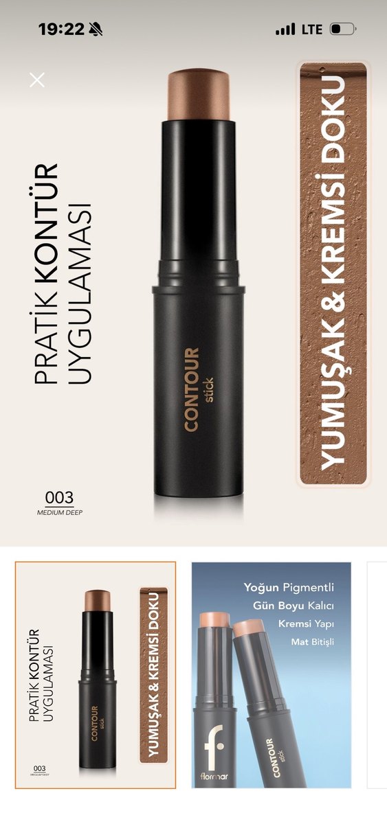 Yoğun pigmentli, kremsi yapıda mat bitişli kontür stick. Gün boyu kalıcı ve yumuşak uygulama sağlar. Renk: Medium Deep. çok az kullanıldı soğuk ton