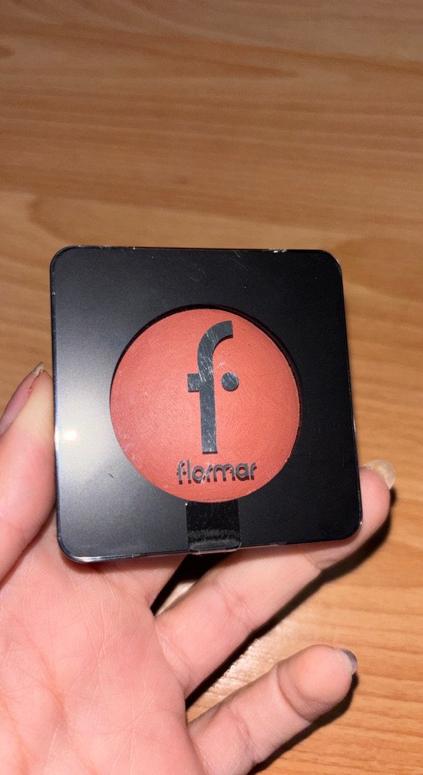 Flormar markasına ait koyu kırmızı renkte allık, siyah kompakt kutuda sunulmuştur. Canlı ve yoğun renk verir.