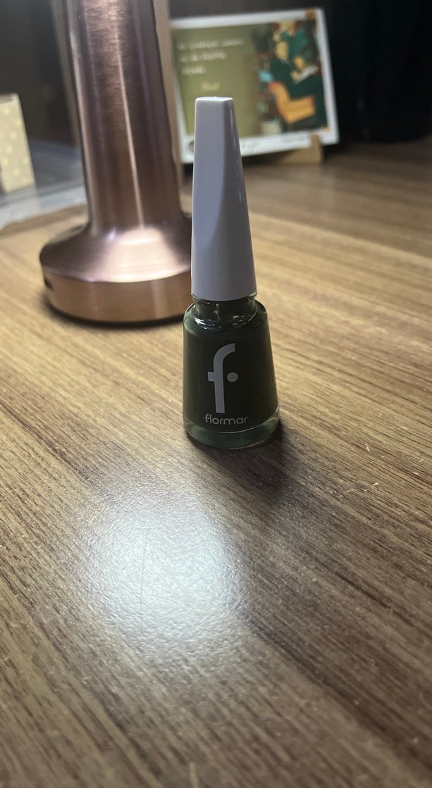 Flormar markasına ait koyu yeşil renkte oje. Beyaz kapaklı ve markanın logosu bulunan şişede.
