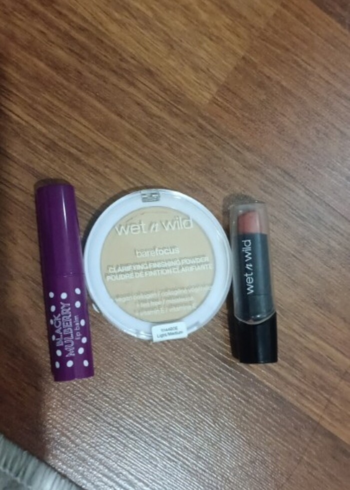 3lu toplu fiyattır Flormar black mulberry (nice karadutlu aynı renk sayilir) çok az kullandildi wet and wild barefocus pudra light/medium rengi hiç acilmadi 0 ürün wet and wild E507C ruj pırıltılı nude kiremit arası bir renktir çok az kullanıldı