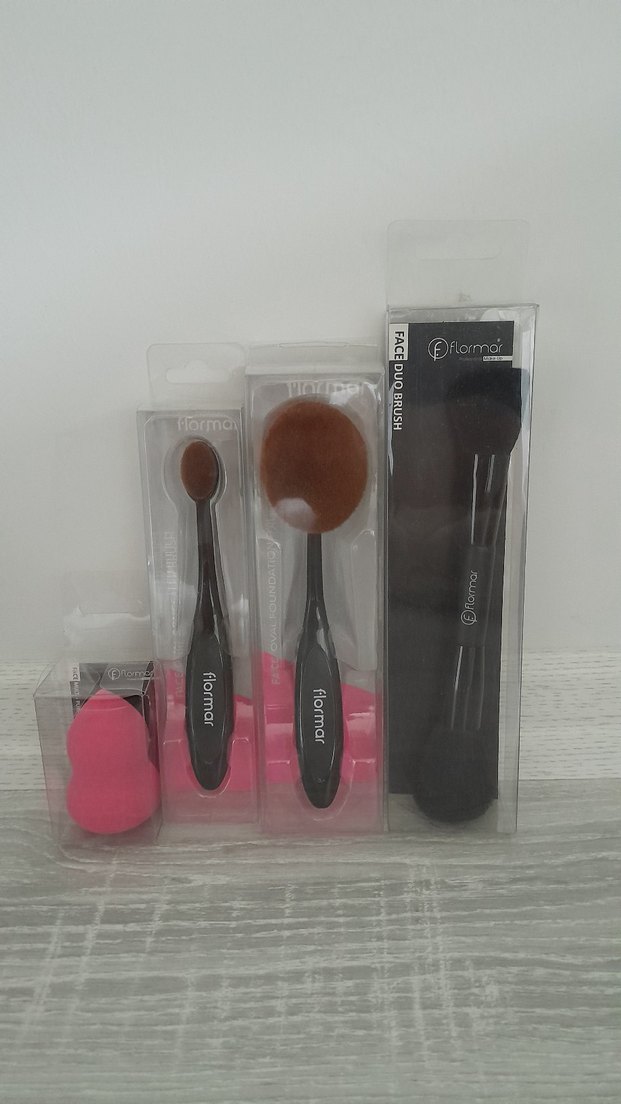 Flormar makyaj fırçası seti, koyu renk saplı ve pembe detaylı farklı fırçalardan oluşur, pürüzsüz uygulama sağlar. ️