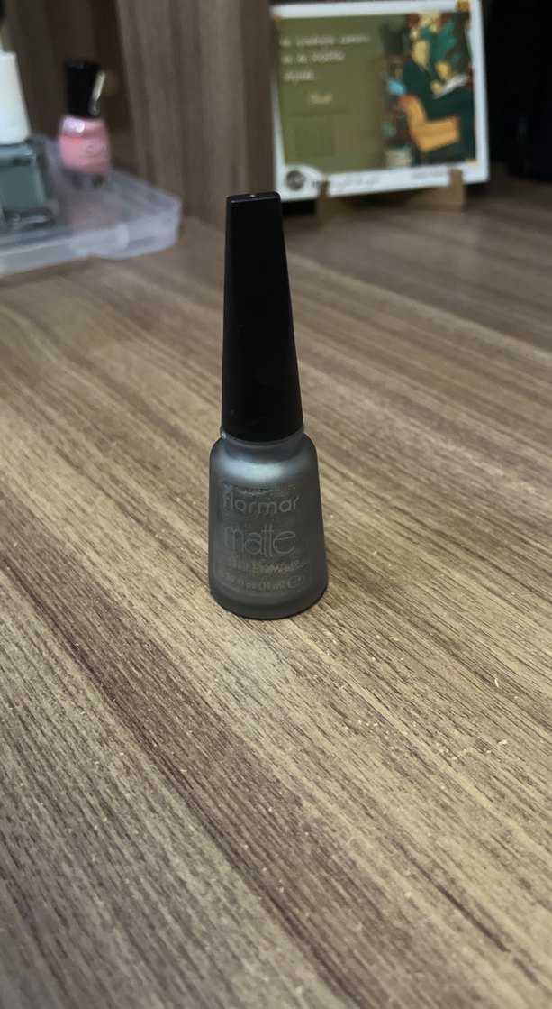 Flormar mat oje, gri renkte ve pürüzsüz bir görünüme sahip. Siyah kapaklı kompakt şişede sunulur.