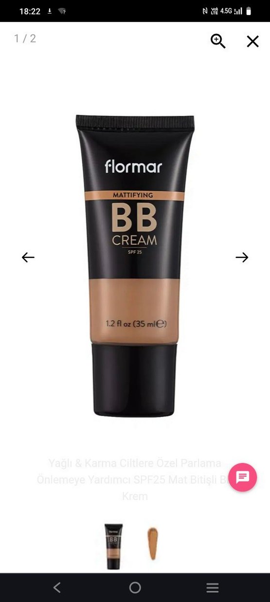 Flormar matlaştırıcı BB krem, SPF 25 koruma sağlar ve parlama önlemeye yardımcı olur. Yağlı ve karma ciltler için uygundur. 35 ml.Light medium farklı Flormar ürünleri için sayfama bakınız
