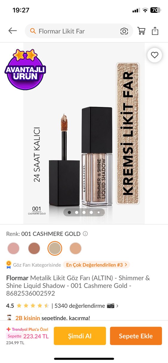 Flormar Metalik Likit Göz Farı 001 Cashmere Gold, 24 saat kalıcı, kremsi dokulu ve ışıltılı bir görünüm sağlar. ✨ürün gratisten aldım denendi sadece