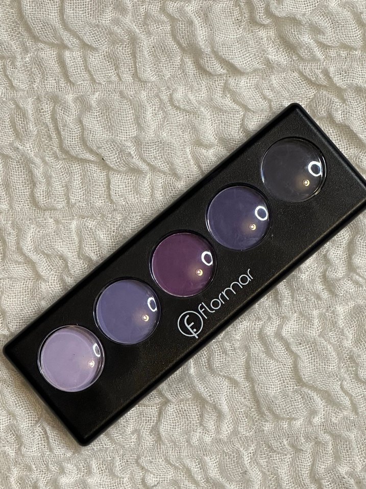 ÜRÜN ÇOK AZ KULLANILMIŞTIR. Flormar markasının siyah kutuda beş koyu mor tonlu göz farı paleti. Canlı göz makyajları için uygun.