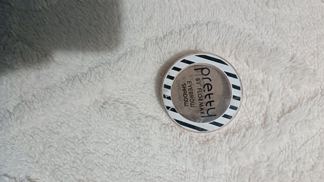 Flormar Pretty marka, kaşlar için tasarlanmış yuvarlak bej kutuda siyah beyaz çizgili göz farı. uyg kategoriyi rozet yaptırıyor