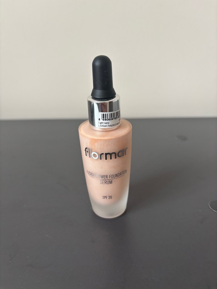 Flormar serum fondöten, bej pastel tonunda, SPF 20 koruması ve pürüzsüz bir bitiş sağlar.