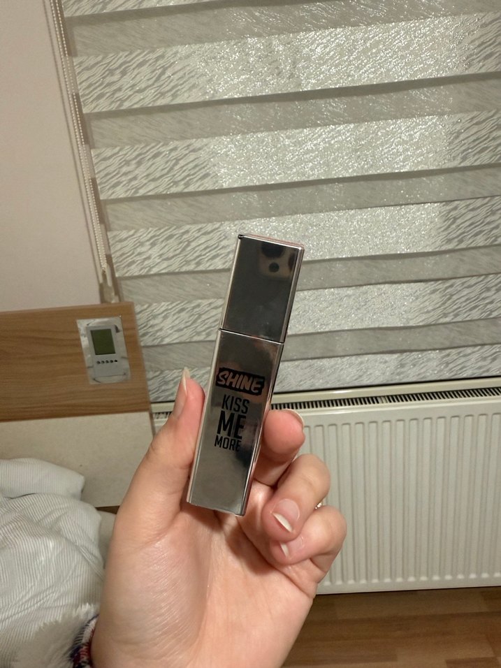 Parlak bej renkte, üzerinde 'KISS' ve 'SHINE' yazan ruj.