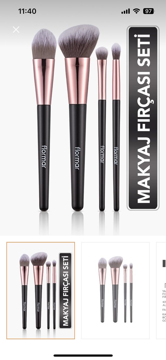 Flormar markasına ait siyah saplı, rose gold detaylı 4 parçalı makyaj fırçası seti, hassas makyaj uygulaması için uygundur. ️