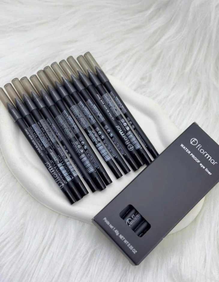 Flormar suya dayanıklı siyah eyeliner kalemler, canlı ve koyu renkli, hassas göz makyajı için. Her kalemin kapağı vardır ve kutuda gelir.