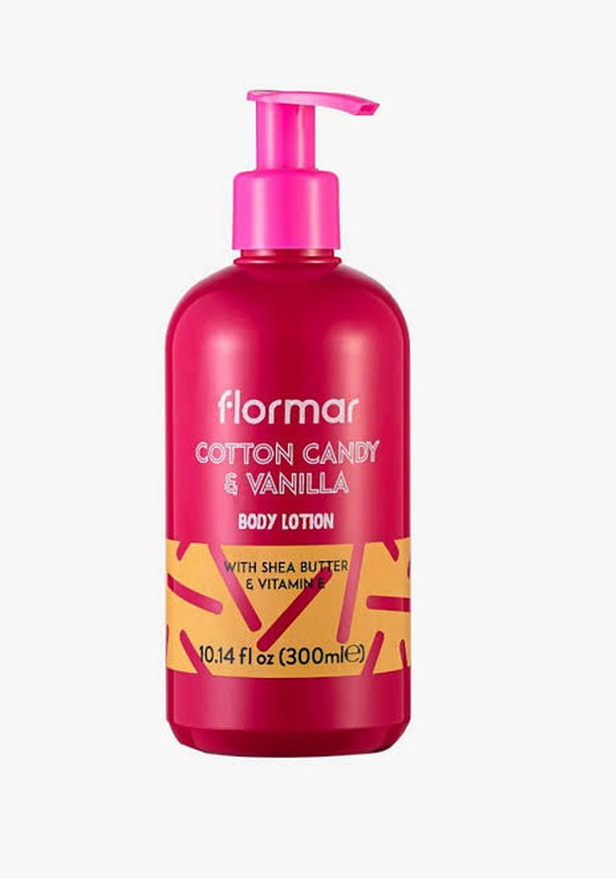 Vanilya ve pamuk şekeri kokulu, shea yağı ve vitaminlerle zenginleştirilmiş Flormar vücut losyonu. 300 ml şişede. ürün görselini eklerim almak isterseniz