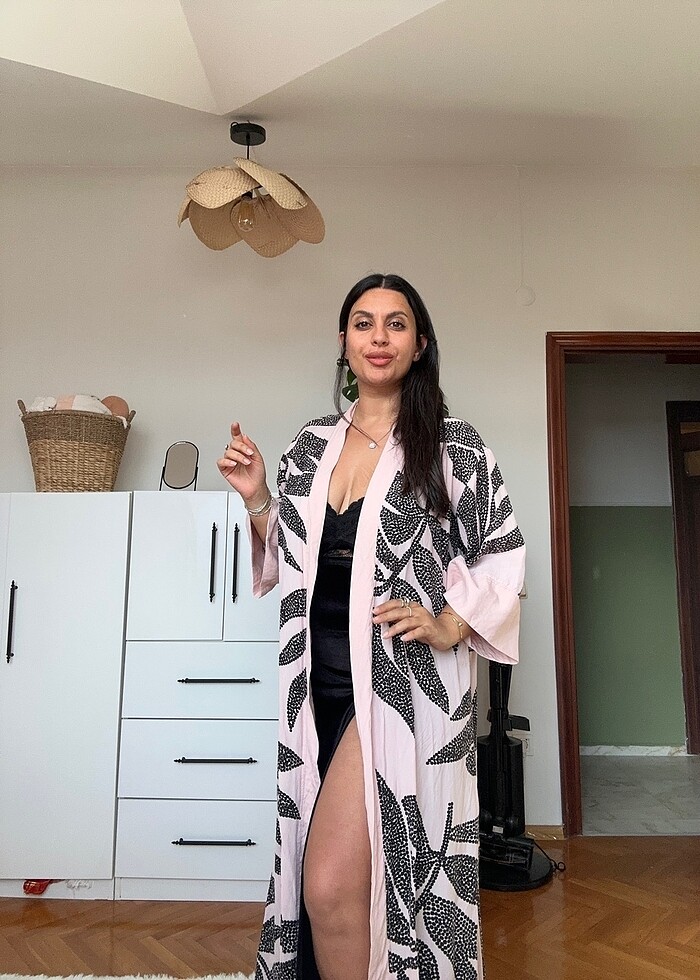 Kumaşı tamamen Pamukludur yazın asla rahatsız etmez. Yaprak deseni son derece şık her bedene uygun dilerseniz spor dilerseniz şık dilerseniz de plajda kullanabilirsiniz. Arge çalışmaları için aldığımız kimonolardan bir tanesi iki kere birkaç saatliğine giyildi.
