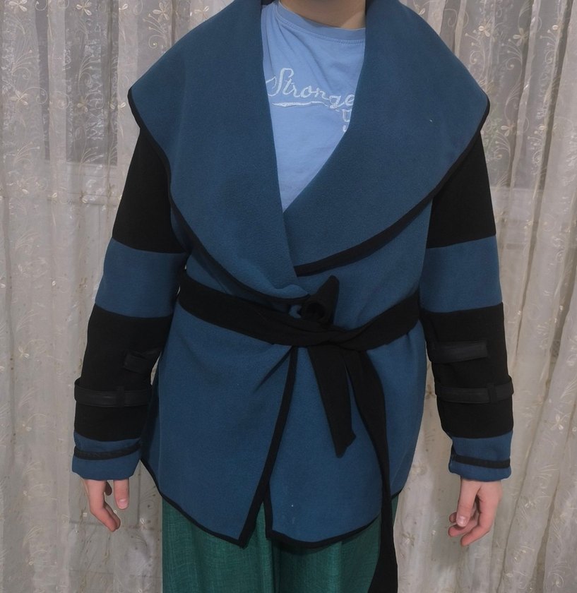 44 beden siyah mavi kombinaysonlu kuşaklı polar kaban