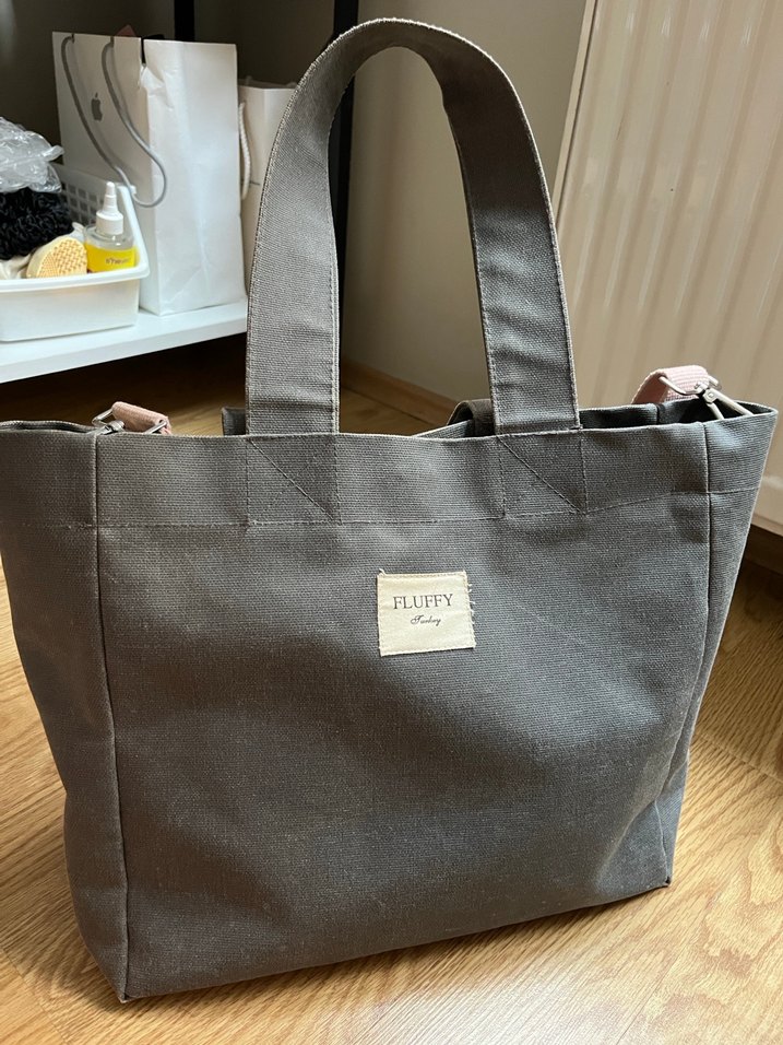 Gri kanvas mumlu çanta Fluffy marka içine laptop vs sığar