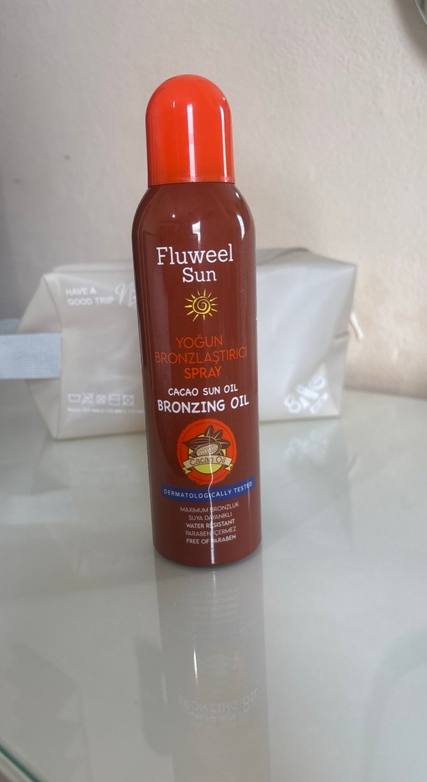 Fluweel Sun bronzlaştırıcı yağ spreyi, yoğun bronzluk sağlar. Dermatolojik olarak test edilmiştir, suya dayanıklıdır ve paraben içermez. ☀️