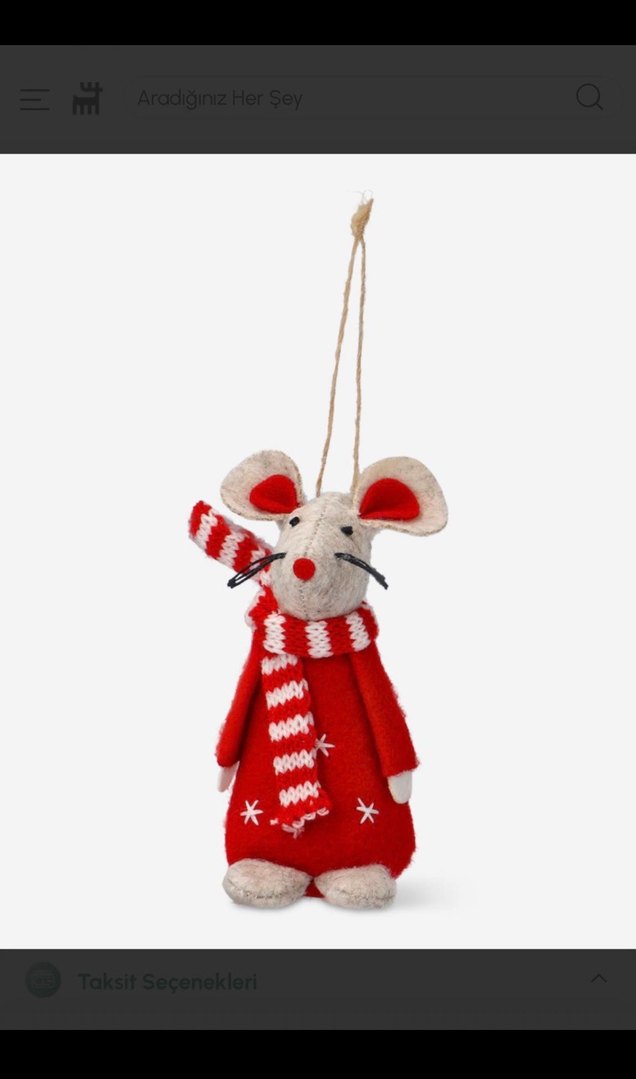 Dekoratif yeniyıl süs, hiç kullanılmadı, oturma kısmında ağırlık vardır. Kırmızı süveter ve kırmızı-beyaz çizgili atkı takmış, asılabilir fare figürü.