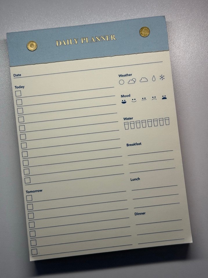 Flying Tiger Pastel Mavi Günlük Planlayıcı Not Defteri Notepad, tarih, hava durumu, ruh hali, su tüketimi ve öğün planlama bölümleri içerir. Gününüzü düzenlemenize yardımcı olur. Hediye geldi.