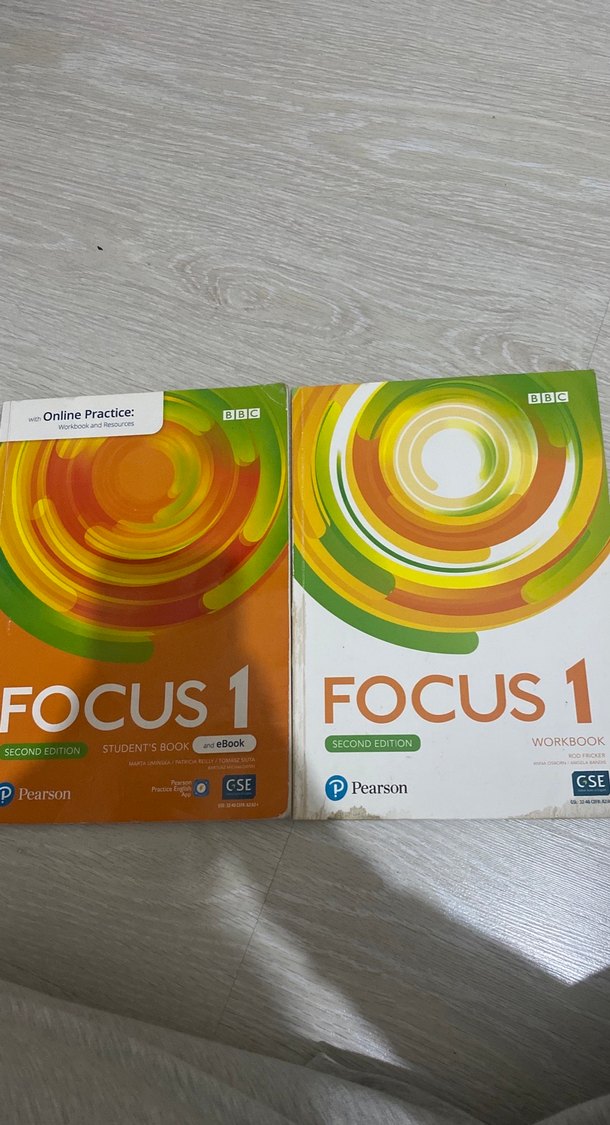Focus 1 İkinci Baskı Öğrenci Kitabı ve Çalışma Kitabı, Pearson tarafından hazırlanmış, online pratik ve GSE uyumlu sınav hazırlık kitaplarıdır. İçinde yazılar vardır. İçindeki kod kullanılmıştır.