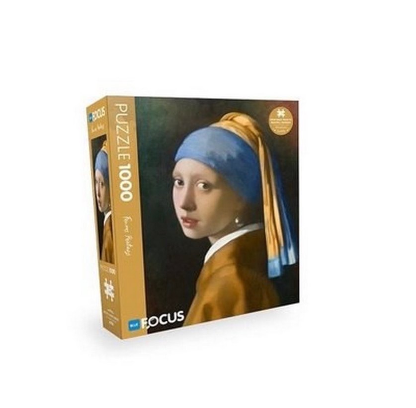 Focus markasının 1000 parçalı puzzle'ı, İnci Küpeli Kız tablosunu koyu ve altın tonlarda sunar. Detaylı ve keyifli bir yapboz deneyimi sağlar. İlanı satın alabilirsiniz.