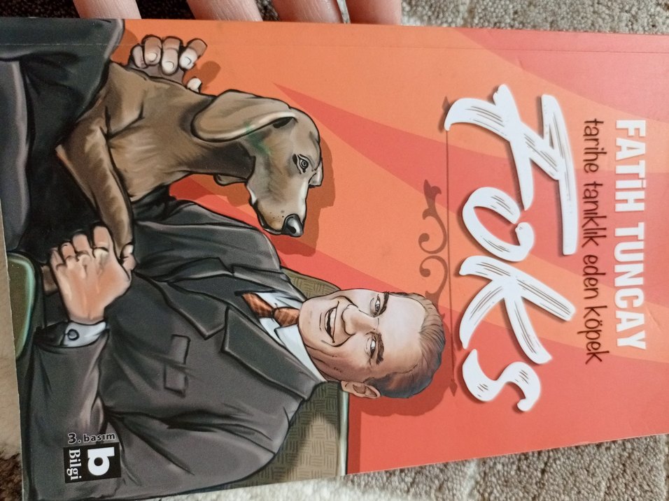 Turuncu zemin üzerinde takım elbiseli bir adam ve köpek illüstrasyonu içeren çizgi roman. Detaylı ve sıcak tonlarda kapak resmi.