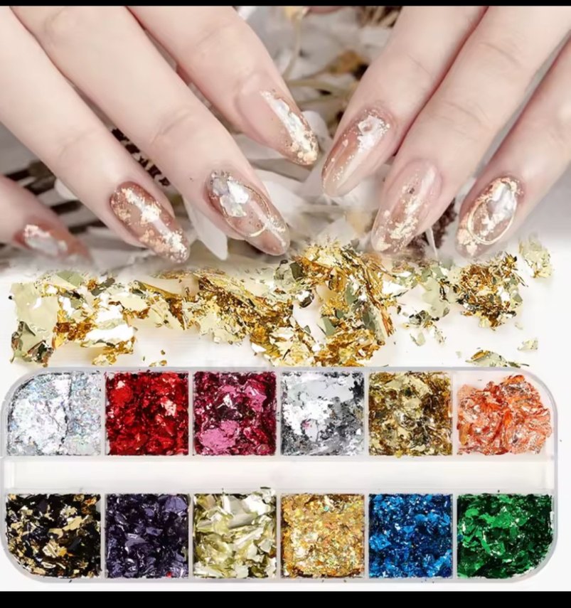 Bu tırnak süsleme seti, altın, gümüş, kırmızı ve mavi tonlarında çok renkli ve hafif folyolar içerir, tırnak tasarımlarını zenginleştirir. ✨