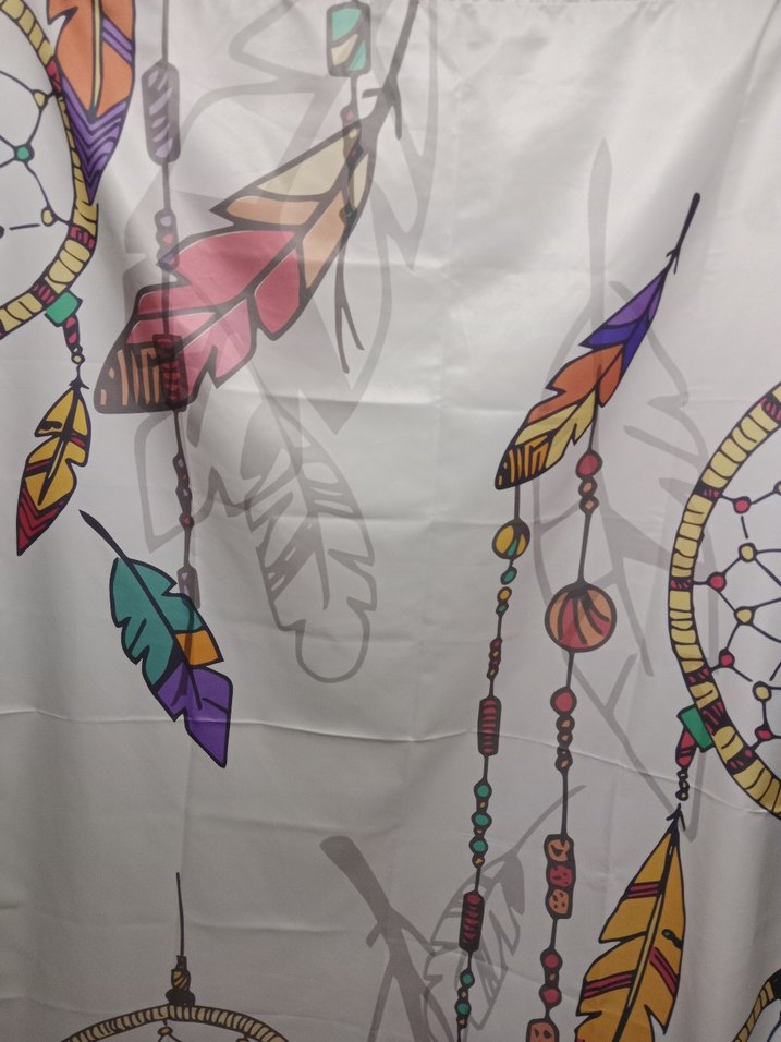 Renkli nakışlı ve boncuklu detaylara sahip fon perde günlük kullanım için bohem tarzda.