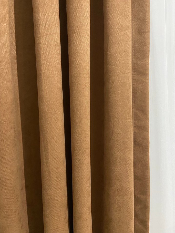 Çağdaş tarzda, desensiz ve kahverengi taba renkte perde. Boyu 245cm 5 pile genişliği, yeni yaptırdım hiç bir defosu yok odanın rengine uymadığı için yenisini yaptırıcam o yüzden satıyorum