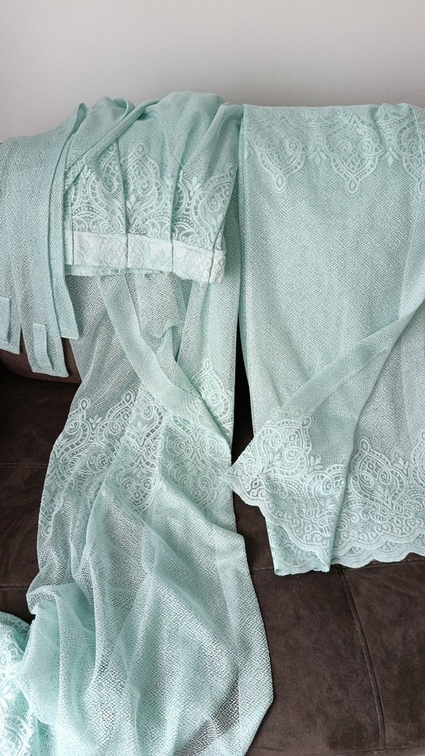 Pastel turkuaz renginde 2 adet fon perde eni 65cm