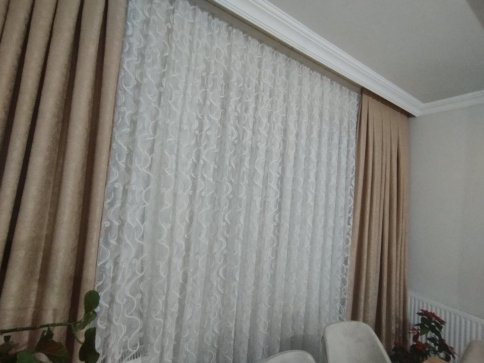 iki adet fon ve tül perde satılık tül 4 metre sık pile