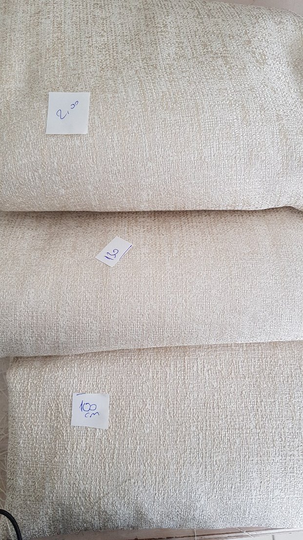 En ölçüleri uzerinde yaziyor 3 parca krem.renk fon perdelik kumas.. Boylari 3 metredir