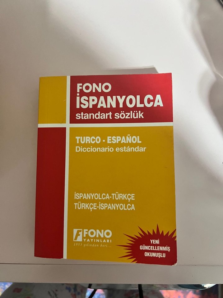 Fono İspanyolca standart sözlük, Türkçe-İspanyolca ve İspanyolca-Türkçe çeviriler, güncellenmiş içerik ve okunuşlu rehber sunar.
