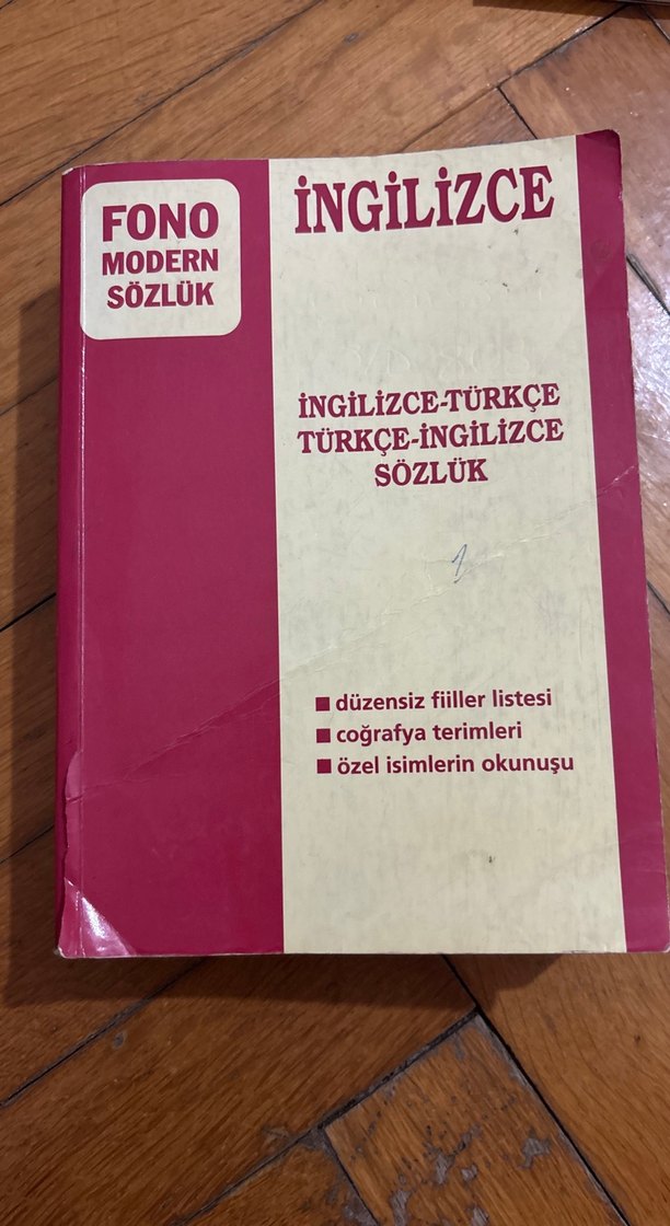 İngilizce-Türkçe ve Türkçe-İngilizce çeviri yapan, düzensiz fiiller listesi, coğrafya terimleri ve özel isimlerin okunuşunu içeren sözlük.