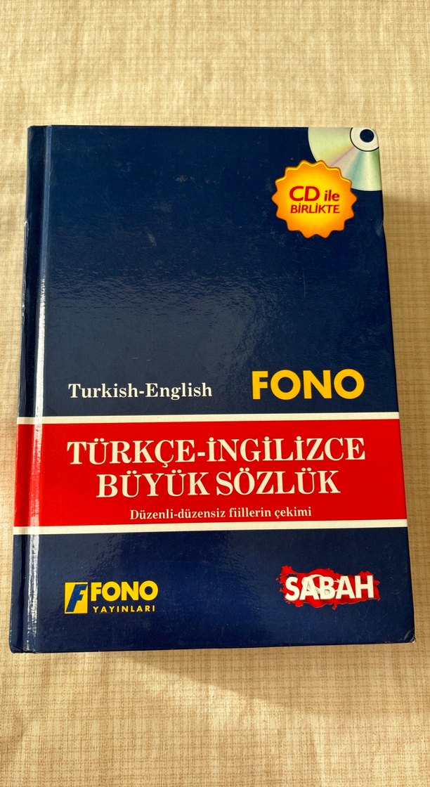 FONO Türkçe-İngilizce büyük sözlük, düzenli ve düzensiz fiillerin çekimini içerir, CD ile birlikte sunulur.