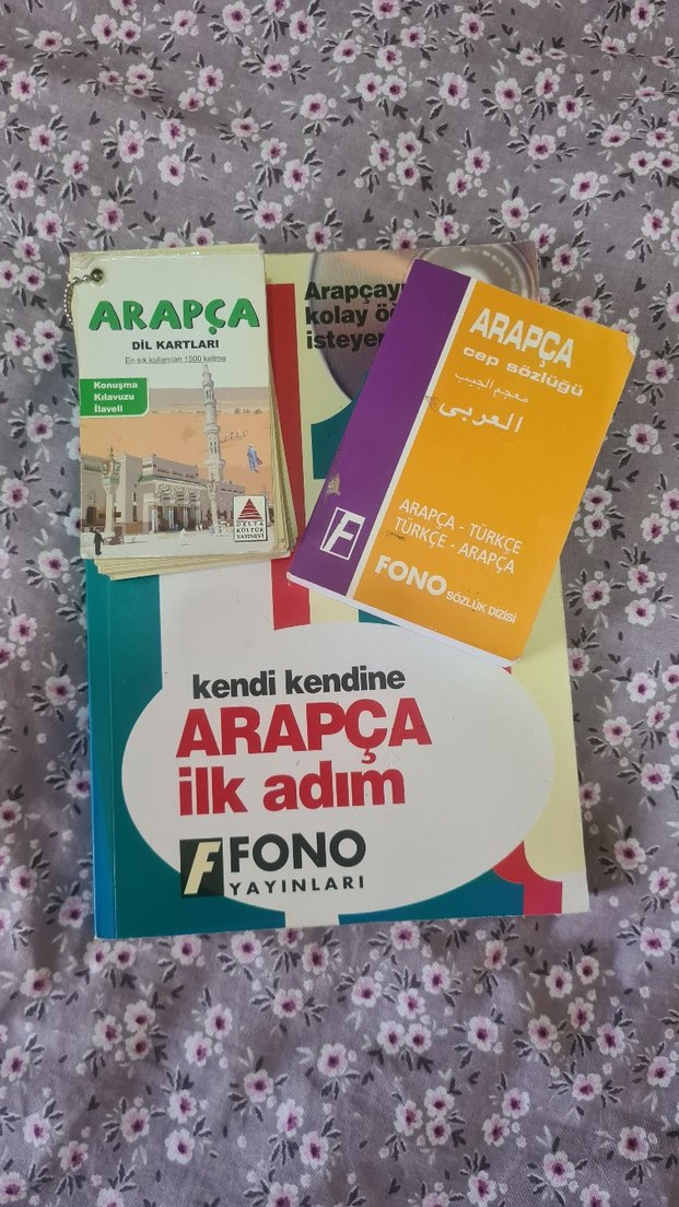 Fono Yayınları'ndan Arapça öğrenmek için sözlük, cep sözlüğü ve başlangıç kitaplarını içeren set. arkadaşıma ait temiz kullanmış faydasını görmüş satmak istiyor geliriyle kedilere yaş mama almamı istedi ☺️