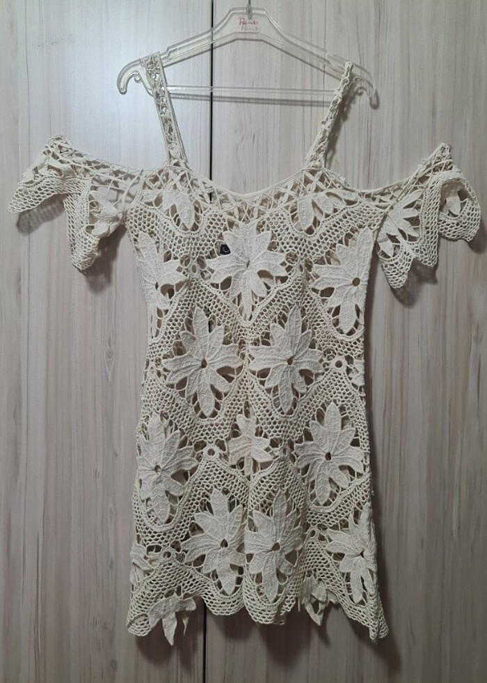 Ürün hiç kullanılmadı. Kalın askılı omuzları dökümlü. Çok şık bir plaj elbisesi.